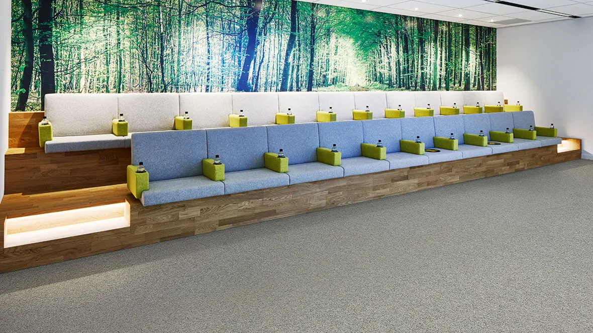 Akzent is Forbo’s value-for-money alternative and the only collection in the needlefelt range that is made of a combination of 80% polyamide and 20% polypropylene fibres. Needlefelt Akzent has a total thickness of 5 mm and a fibre weight of 500 g/m² and is a practical solution for hard-wearing commercial flooring.The collection’s textile look and colour palette fit harmoniously into any interior design. Akzent is available in 13 contemporary and commercial colours and completes the Forbo needlefelt range. The high quality of Forbo Flooring needlefelt is based on more than 40 years of experience in the production and supply of this hard-wearing floor covering. It is available in 3 qualities, designed to meet different requirements.Extremely robust• Wear-resistant performance approved in class 33 according to EN 1307.• GUT seal of approval for “contaminant-tested textile floor coverings”.• Withstands heavy use, such as castor chairs in offices or wheeled suitcases in airports.Sustainabl
