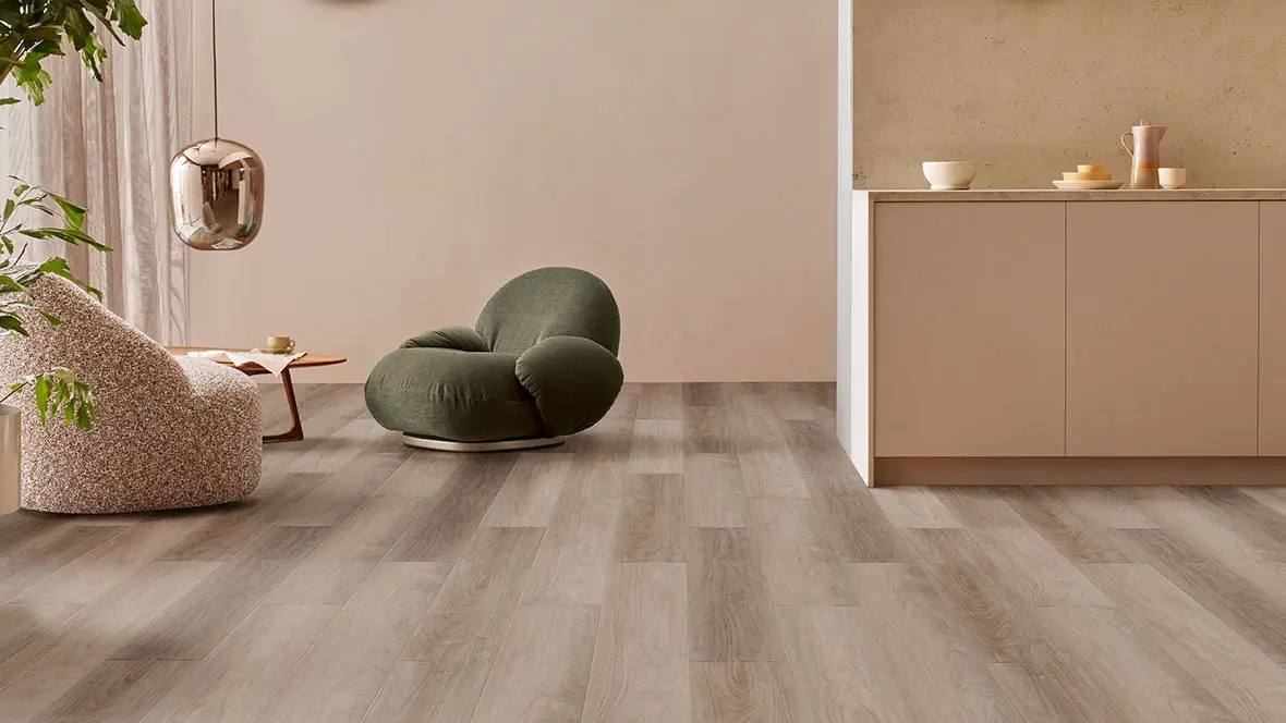 Enduro Click Decibel is a semi-rigid LVT click floor with an integrated IXPE foam backing and a 0.55 mm thick wear layer. The built-in underlay provides an acoustic impact sound reduction of 19 dB.
