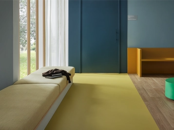Take a look in our digital sample book Take a look at our brochure Download here the Eternal technical specifications Download here the Eternal collection overview for more information about the pattern repeat, installation direction, available welding rods and the LRV & NCS values.For other documentation please go to our download center Building Information Modelling files are available for collections and can be downloaded from the BIMobject website:Eternal Wood Eternal Material Eternal Colour Eternal Next The Eternal colour selection features a pigmented top layer for enhanced colour intensity and light fastness. Coloured paste ensures consistent colours without the risk of differences or bands typical in conventional printing. It includes a solid, coloured wear layer for vibrant hues and a range of colours with subtle microspheres, making the material dementia-friendly. Another selection incorporates larger accent chips for visual appeal. Additionally, 15 of the 20 coloured paste